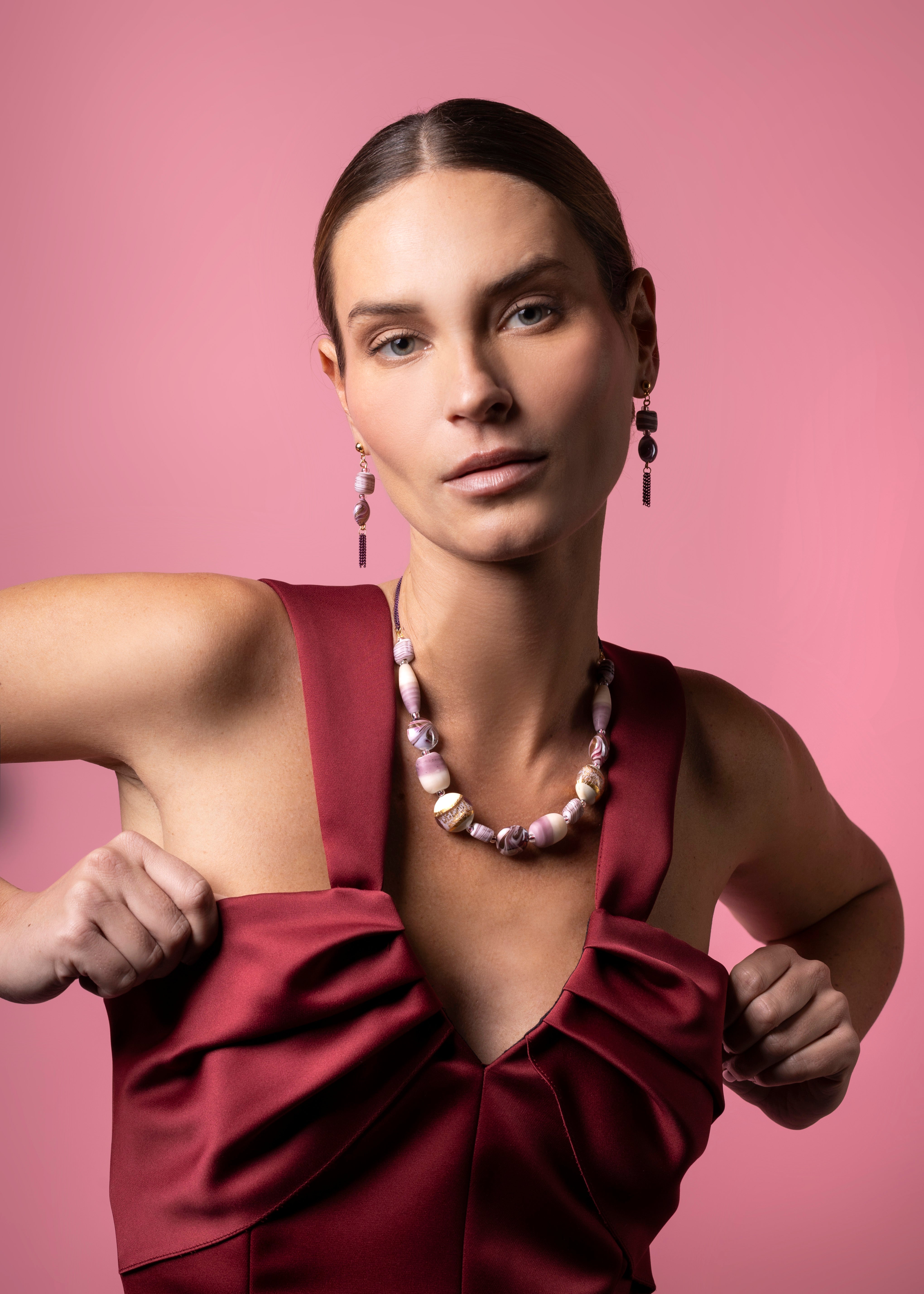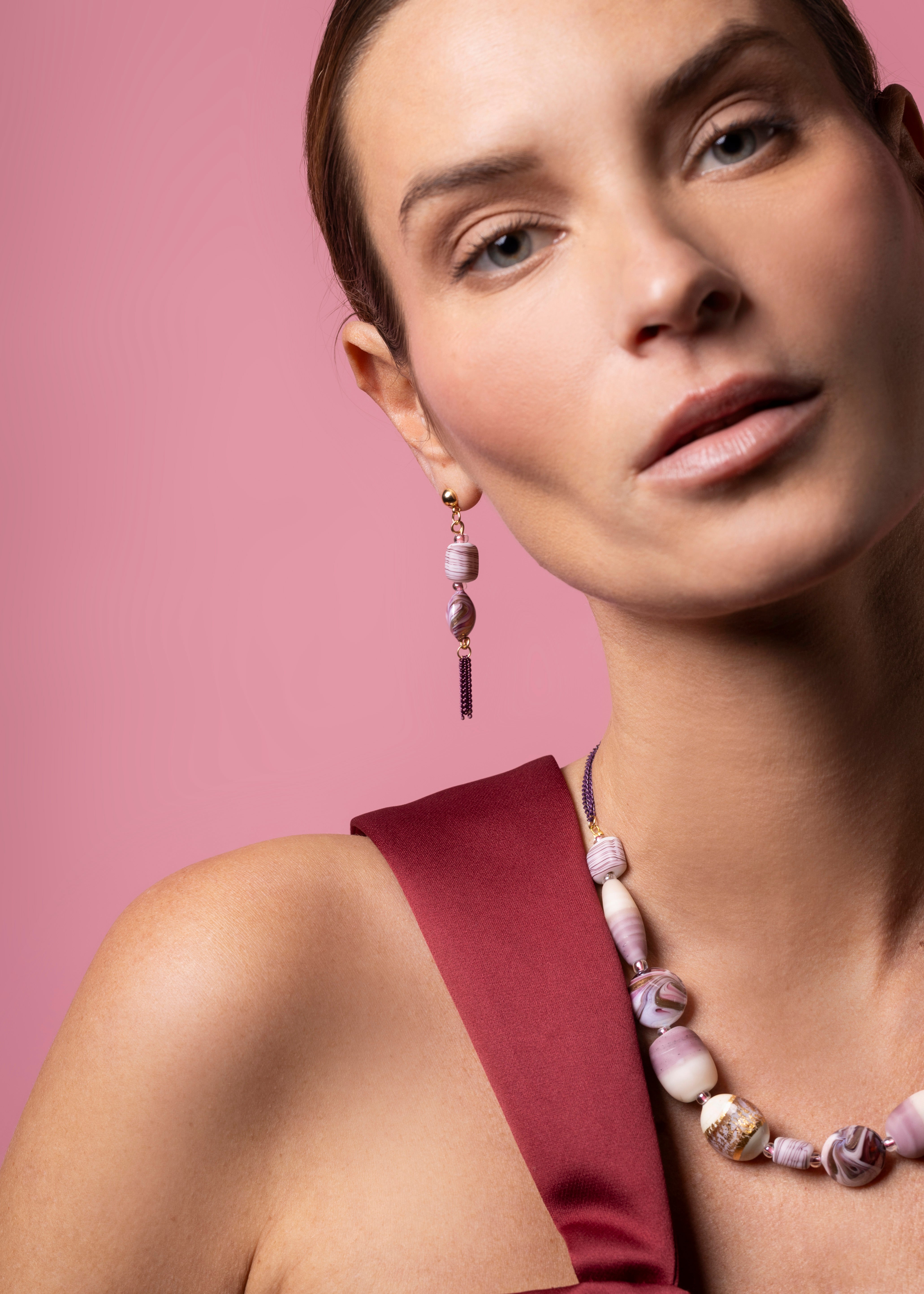 Model wearing Murano glass jewelry